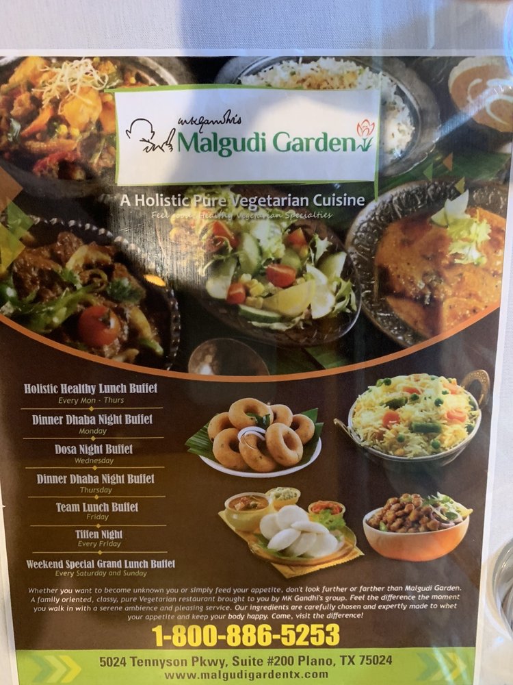 Malgudi Garden, located in Plano, TX, offers a wide range of Indian cuisine options with a focus on vegetarian and vegan dishes. The menu includes flavorful finger foods like Aloo Bonda and Mix Veg Bajji, delicious soups and salads such as Garbazzo Salad and Hot and Sour Soup, and Indian thalis like the North and South Executive Thali lunch boxes. Customers rave about the variety and quality of the food, with many highlighting the vegan options available. The ambiance and service are also praised, making it a great place for plant-based eaters and those looking for a tasty Indian buffet experience. With options for outdoor seating, a lunch buffet, and a friendly staff, Malgudi Garden is a must-visit for anyone craving authentic Indian flavors in a welcoming environment.